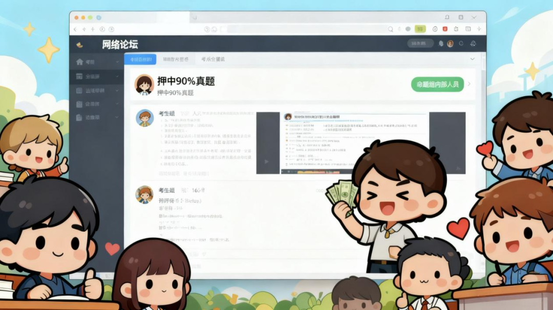 不法分子在考前发布“占坑帖”,考后利用系统漏洞,篡改帖文内容伪造“押中真题”假象,以此售卖试题答案。