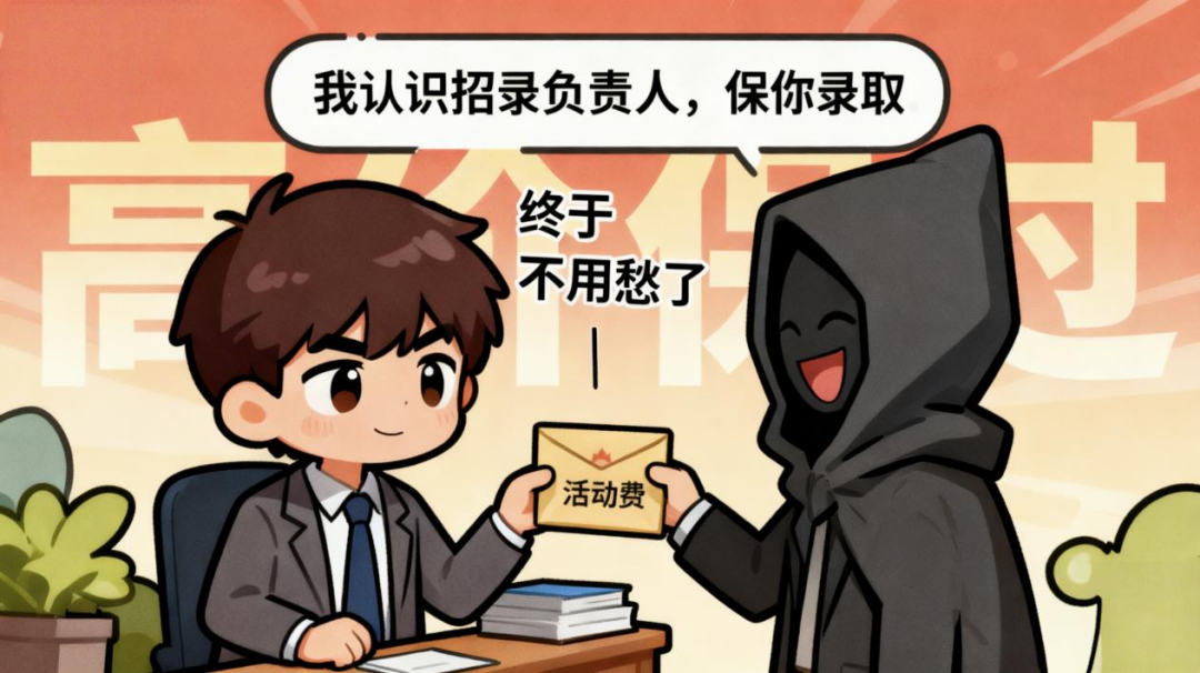 不法分子以各种方式谎称“认识招录老师”“面试考官”等,向考生透露“可修改成绩或锁定复试面试名额”,骗取考生支付“活动费”“关系费”。
